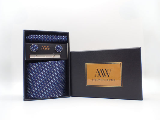 Gold Square Pattern Tie Set / Pocket Square, Bowtie, Tie Clip, Cufflinks / Gift for Him / Wedding Groomsmen Gift / Men's Present / Box