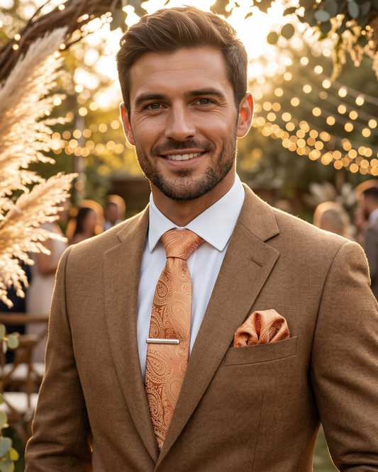 Boho Terracotta Rust Woven Burt Orange Copper Texture Tie Set
