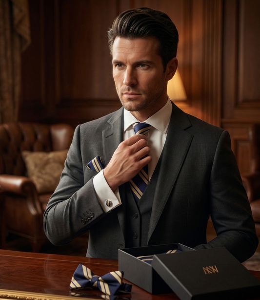 Sophisticated Bronze Brown Micro-Grid Tie Set