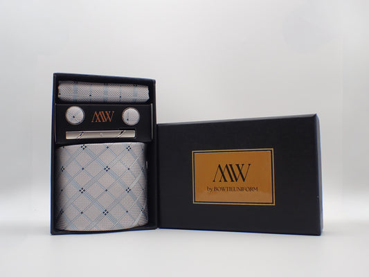 Silver Navy Stripe Tie Set / Pocket Square, Bowtie, Tie Clip, Cufflinks / Gift for Him / Wedding Groomsmen Gift / Men Gift Box