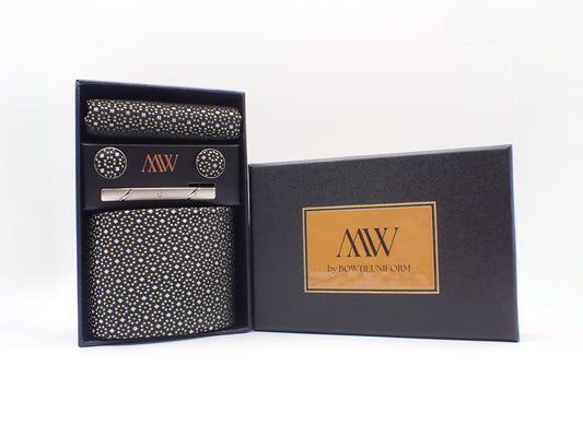Silver Dot Pattern Necktie Set / Pocket Square Tie Bowtie Cufflinks Set / Wedding Tie / Tie Clips / Gift for him Mens Groomsmen Gift