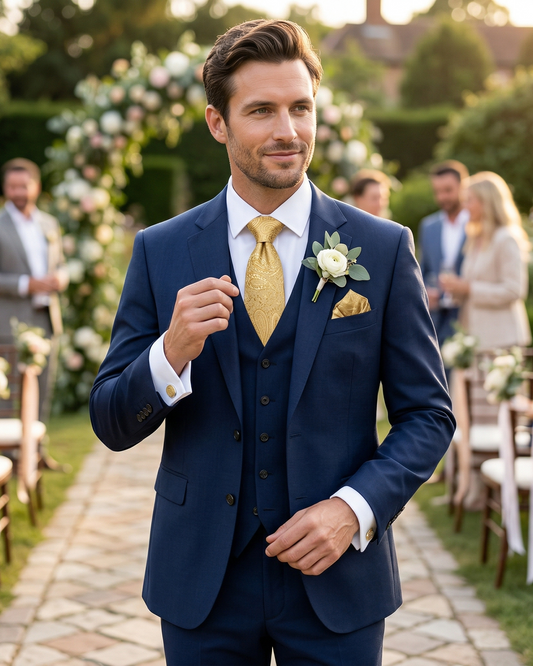 Navy & Gold Ornate Paisley Luxury Wedding Tie