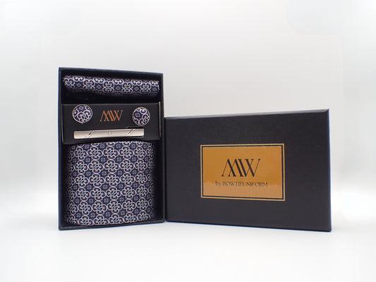 Blue Diamond Paisley Tie Set / Tie, Pocket Square, Bowtie, Tie Clip, Cufflinks / Gift for Him / Wedding Groomsmen Gift Set / Men's Present
