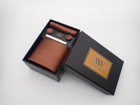 Sophisticated Bronze Brown Micro-Grid Tie Set